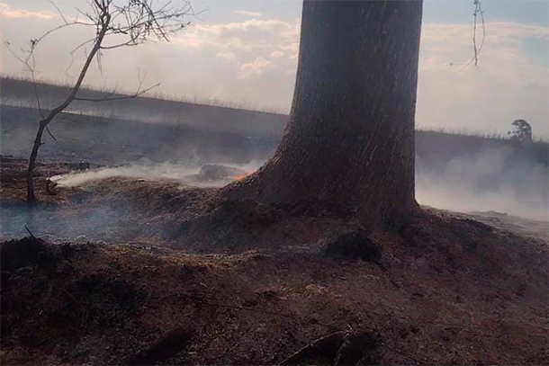 Na Fazenda Tamboril, a tarde do sábado ficou marcada como um momento assustador e sem precedentes. "Eu estava sozinha em casa, quando recebi uma mensagem de um vizinho falando que havia fogo em nossa propriedade, então saí de dentro de casa e avistei o fogo numa palhada de milho próxima do local. Com o vento o fogo se espalhou muito depressa se aproximando cada vez mais de casa e eu fiquei em desespero. Comecei a pedir ajuda aos vizinhos e rezando para o incêndio não se aproximar. Graça a Deus o Jadir chegou e foi chegando mais gente, uns com trator, outros com bomba costal com água e outros com ramos, e com a graça de Deus conseguimos controlar o fogo. Com o incêndio houve vários danos na nossa propriedade, mas o prejuízo maior foi na parte da minha sogra onde começou o fogo e queimou tudo, palhada, cercas e mata ciliar" - desabafou Rosilaine de Fátima Ribeiro Alves.