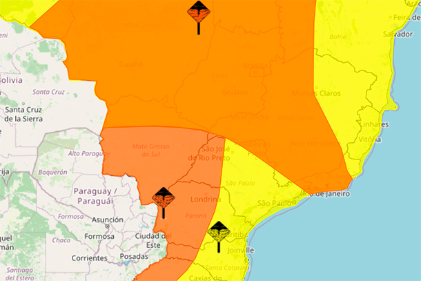 O Instituto Nacional de Meteorologia (INMET) publicou na manhã desta quinta-feira (19) um alerta laranja devido à grande possibilidade de ocorrência de chuvas intensas em uma extensa região do Brasil Central, abrangendo o município de Tapira.