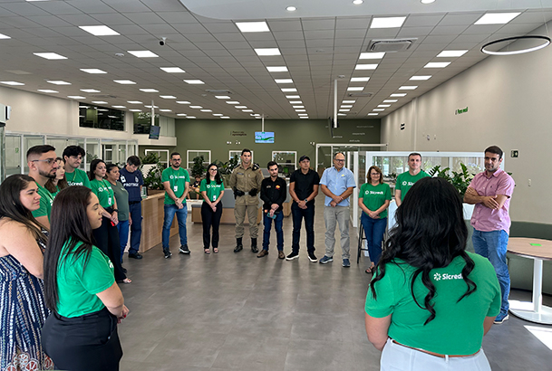 A Sicredi Ibiraiaras RS/MG celebra o seu primeiro ano de atuação em Iturama (MG) neste sábado (21). Presente no município desde 21 de fevereiro de 2025, quando inaugurou o Escritório de Negócios, a cooperativa está com agência Sicredi na cidade desde novembro. Para marcar esse importante momento, foi promovida uma comemoração na sexta-feira (20), que contou com a participação do presidente Sadi Bento Rigotti; do diretor executivo Pedro Aiolfi; da secretária executiva Jane Maria Cima; do gerente de Desenvolvimento de Negócios Gelson Comin; do assessor de Comunicação e Marketing Fabrício Maschio Favretto; e do Tenente da Polícia, Capitão Fernando Quatroque.