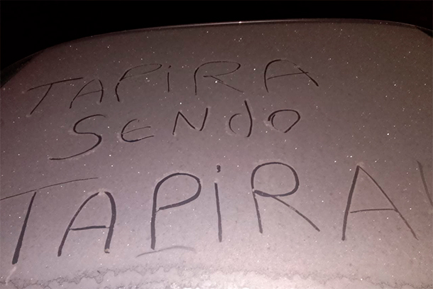 Dia mais frio do ano em Tapira faz município amanhecer em um cenário que remonta à Europa, com solo, telhados, carros e vegetação tomados por gelo.