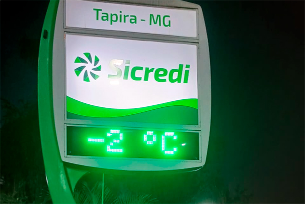 O termômetro do totem do Sicredi, instalado na Praça Antônio Venâncio de Souza, que está longe de ser o ponto mais frio da cidade, marcou -2° C.