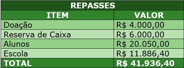 O resultado financeiro final do ano de 2025, apontou para uma arrecadação de 38.336,40, sendo R$ 8.137,50 referentes as minifeiras realizadas ao longo do ano e, R$ 30.198,90 da Feira.