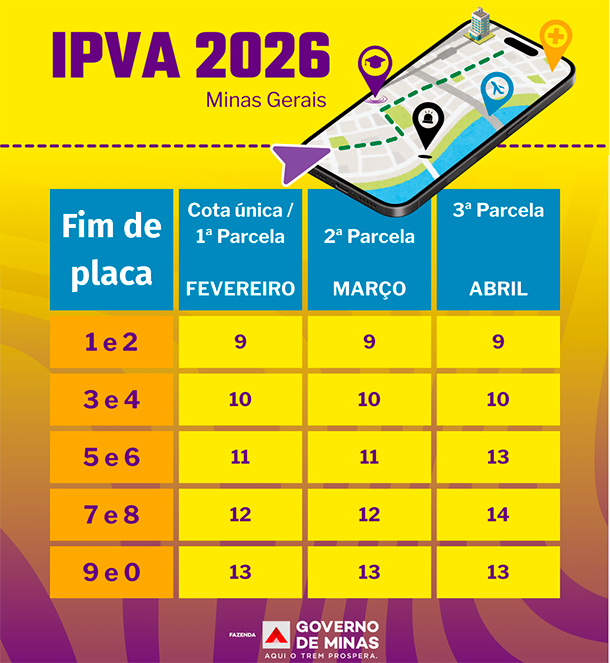 Já está disponível no site da Secretaria de Estado de Fazenda de Minas Gerais (SEF-MG) a consulta, pelo Renavam, dos valores do Imposto sobre a Propriedade de Veículos Automotores (IPVA) para 2026. A consulta também pode ser feita pelo telefone 155 do LIGMINAS e no aplicativo MG App, do Governo de Minas.